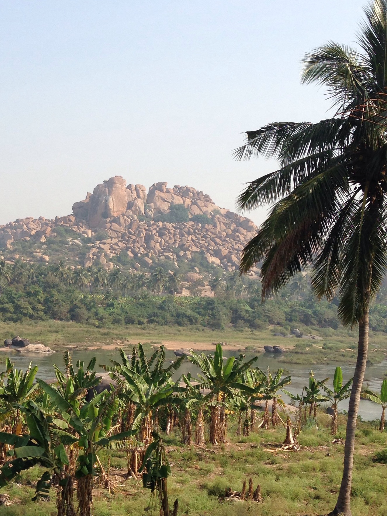 As we approached Hampi we were greeted by an incredible landscape. Paddy fields and banana plantations interspersed with surreal giant boulders sitting on top of each other at improbable angles (I still have no idea how they came to be here and need to pick my Geologist Uncle’s brain).