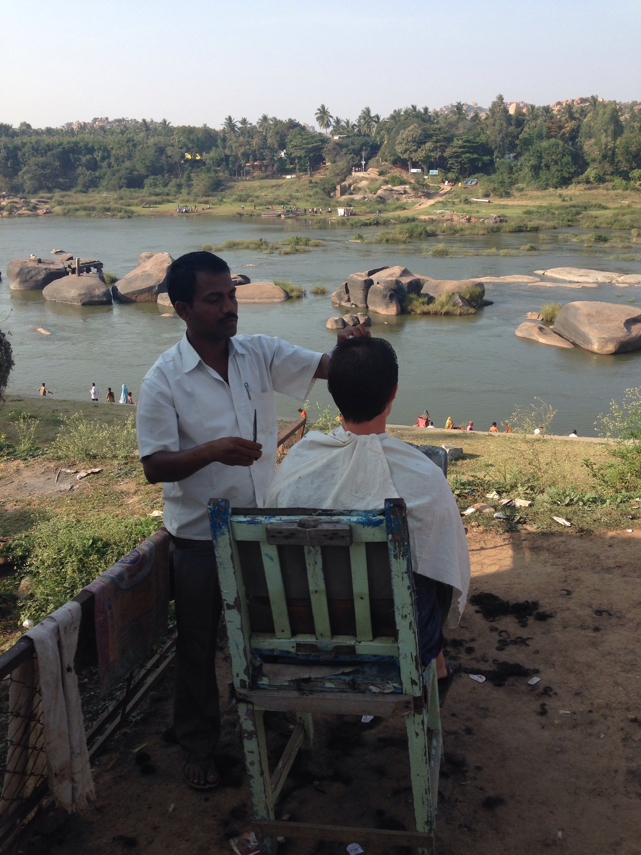 In the afternoon I had a spontaneous haircut looking out over the Tungabhadra river. It may not be the best style but it is definitely the best view I’ve ever had during a haircut.