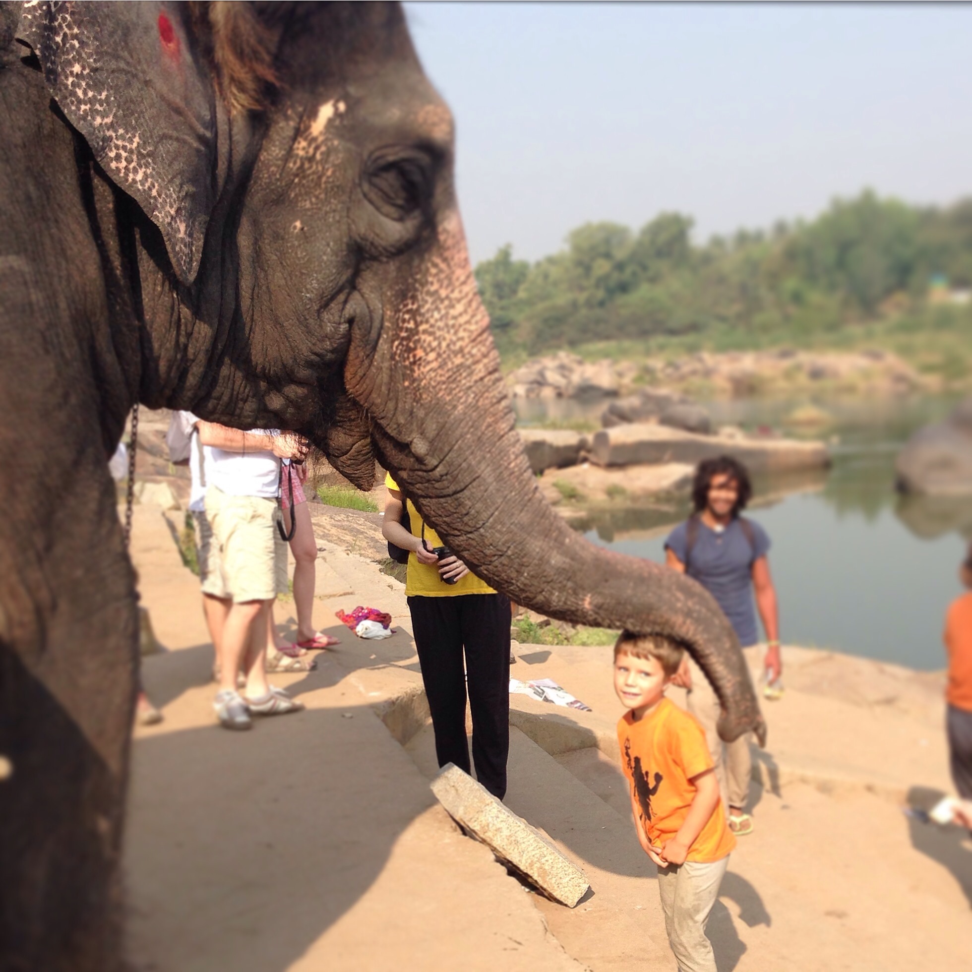 The next morning George and I wandered down to the ghats to catch Lakshmi the elephant have her morning bath. We were told she would be there about 8.30 but in fact arrived nearer 10. It was worth the wait. She seemed to really enjoy her bath and George loved feeding her bananas and having a smooch (blessing). I really enjoyed the one to one time with my boy as we shared bananas and chai and watched the world go by.
