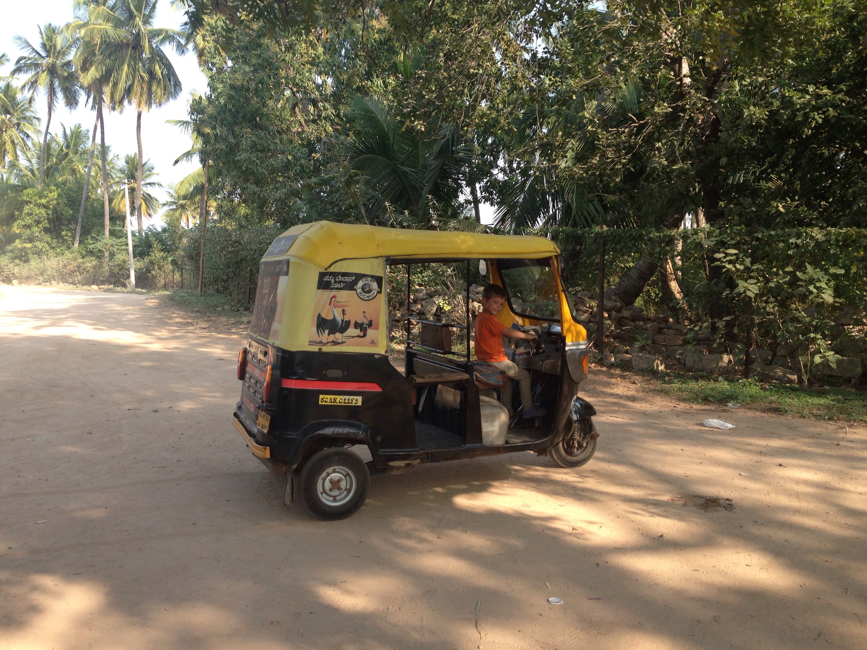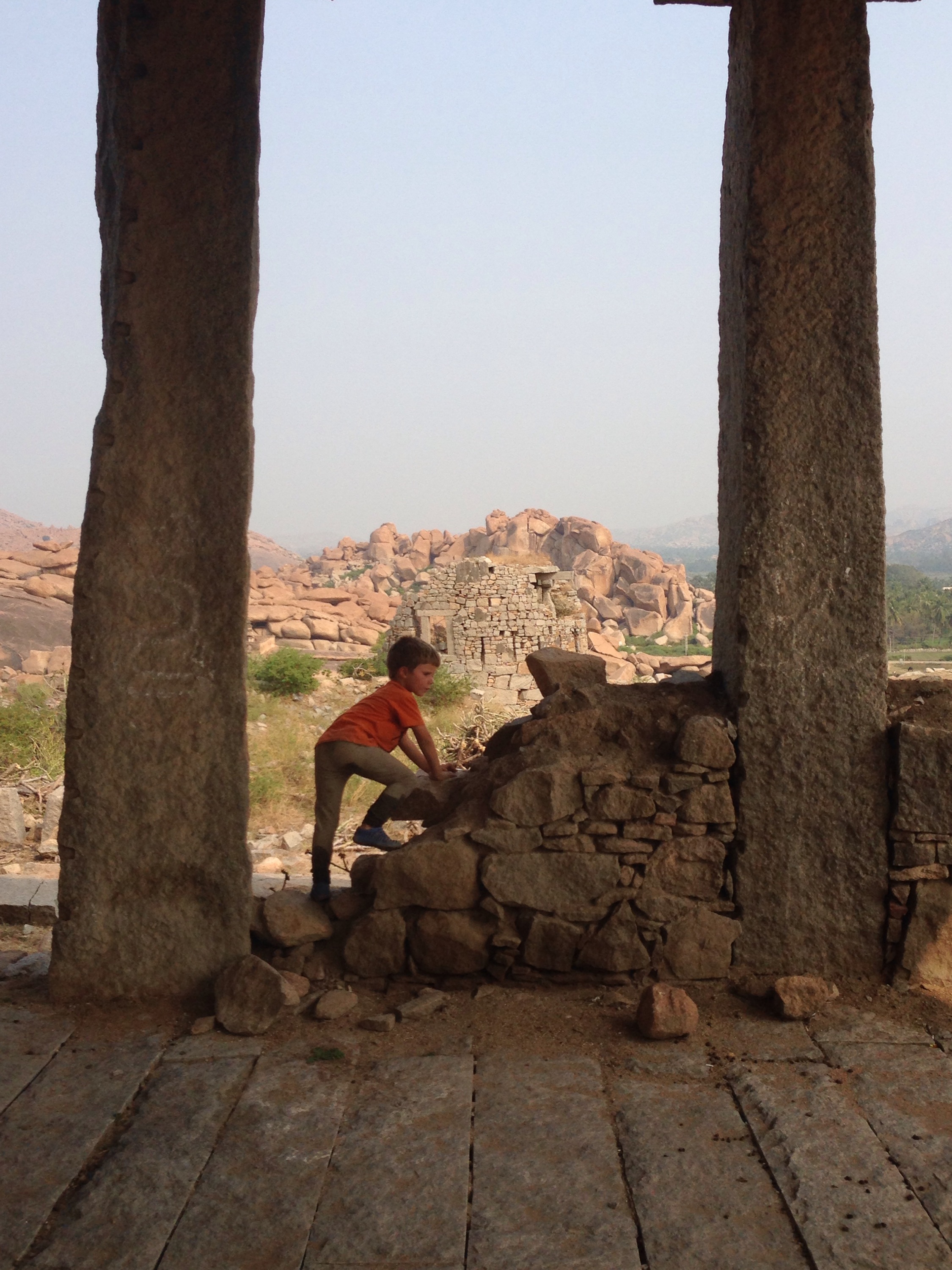 We spent the rest of the afternoon touring the ruins in an Auto Rickshaw. This is when I fell in love with Hampi. Trying to imagine life in its hey day when it was a bustling commerce hub and home to 500,000 people. The boys had fun running around playing hide and seek and being explorers. George got a driving lesson from Sadiq our tuktuk driver.