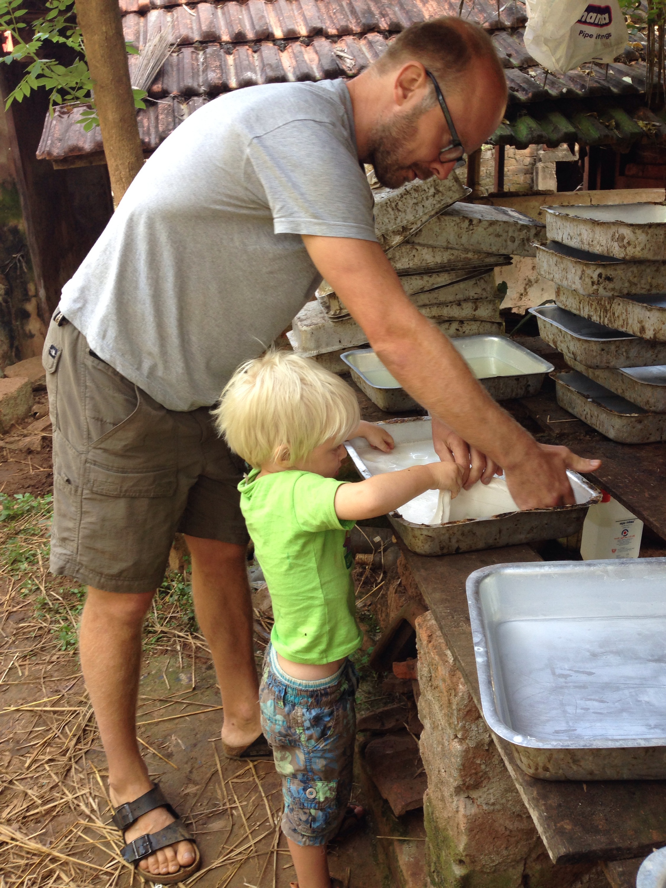 The farm is set on 15 acres of coffee, rubber and spice plantation, with a stream, swing, tree house and rabbits. It was a really beautiful place to while away the hours. The boys loved having company in the form of Santosh’s daughters and nieces. During our visit we got to pick coffee beans and learnt how to make rubber sheets.