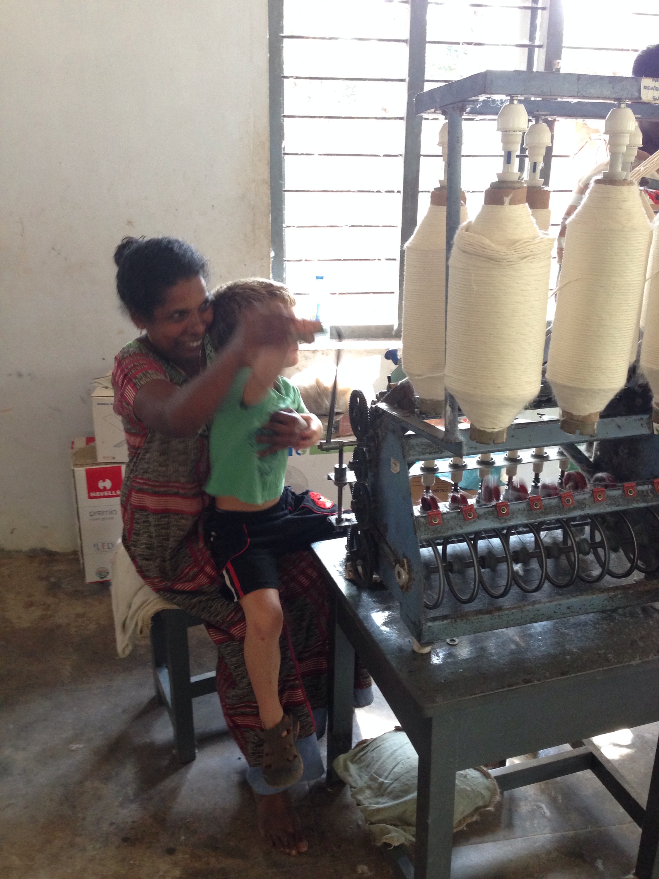 We also visited the ladies working hard sorting nuts in the cashew production factory, and some others spinning cotton. The boys cooled off with a dip in the river.